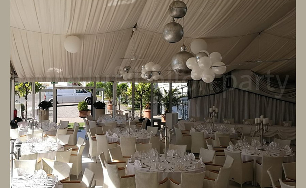 Ein umfassendes Angebot für Hochzeitsfeiern: Luftballons sind die günstigsten und die spektakulärsten Raumplatzierungen und in den unterschiedlichsten Designs machbar. Wir machen unsere Objekte aus einer großen Auswahl professioneller Stoffe, um in Räumlichkeiten jeglicher Art die gewünschte und individuelle Dekoration schaffen zu können.